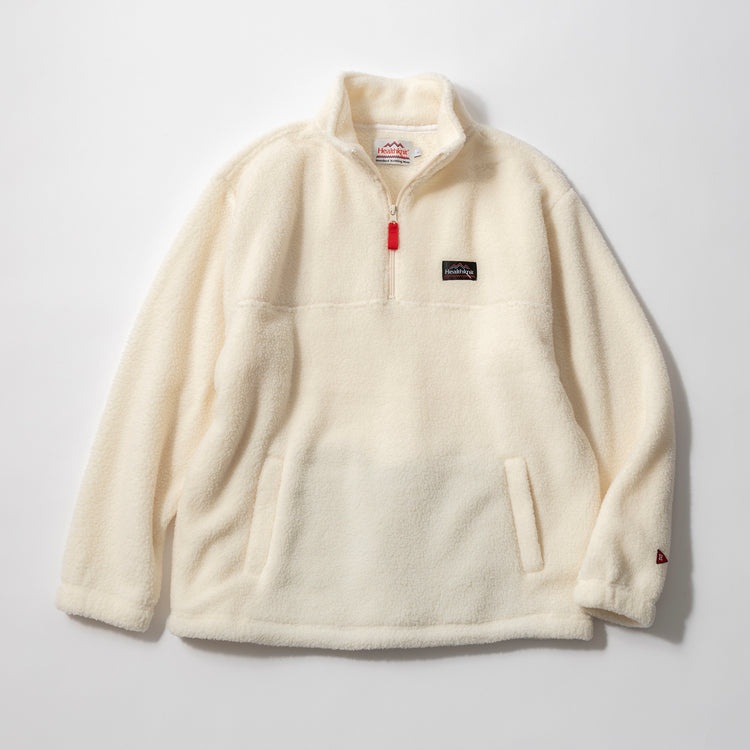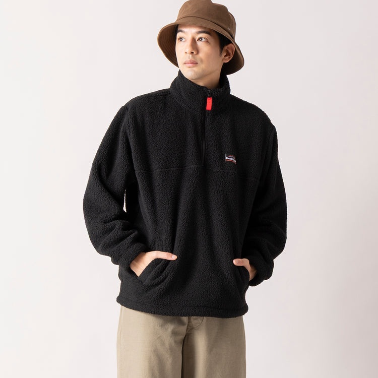 一見普通のボアフリースと思いきや、どこか漂うレトロな雰囲気……。それに気づいた方はツウな服好きです! 注目いただきたいのが、左胸の通称「山ロゴ」ネームと左袖のフラッグロゴワッペン! 本作、ヘルスニットの「エクスペディション ボアフリース ハーフジップ」は、レトロロゴで’90sムードをまとった一着なのです。ふわふわ暖かなボアに、ゆったりクラシックフィット&広めのアームホールで中に着込んでレイヤードしやすい。袖口ゴム&裾ドローコードで風を防ぎつつシルエットの味変もできて、さっと着てサマになる“エモい”相棒になってくれます!