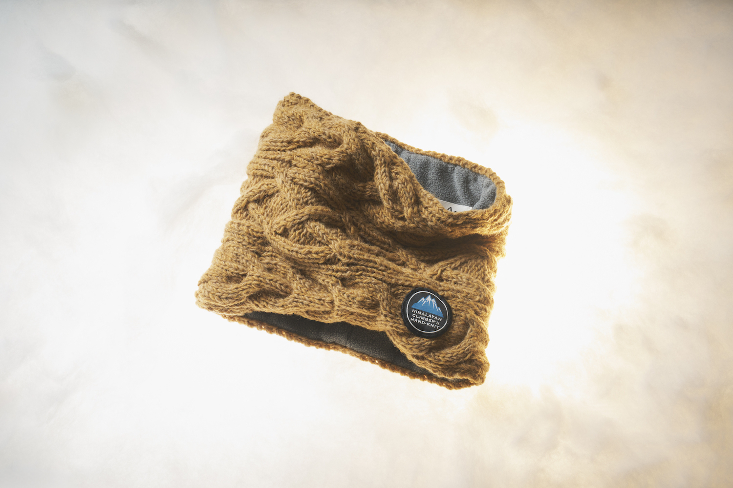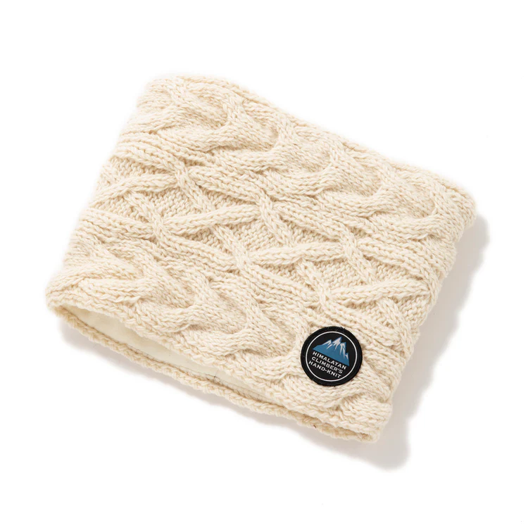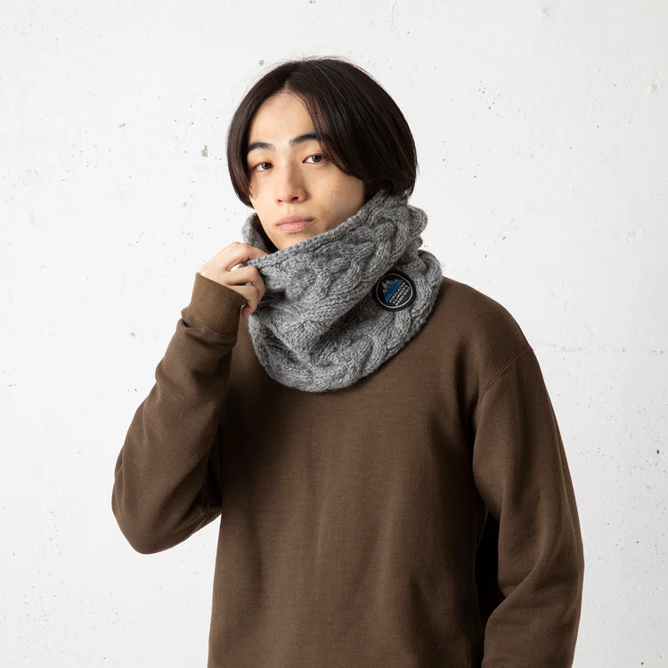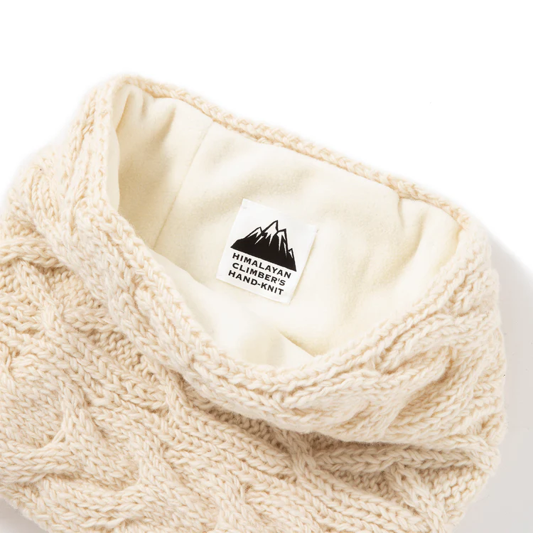 世界最高峰の山、エベレストを有するネパールの地で手編みで仕上げられたヒマラヤン クライマーズ ハンドニットのスヌード。熟練の職人がひとつひとつ丁寧に編み込んだ、どこか懐かしいケーブル模様が美しく、ボリューム感もたっぷり。裏面は肌触りの良いフリース素材なので、ウール特有のチクチク感から首を守り、申し分のないあたたかさ。