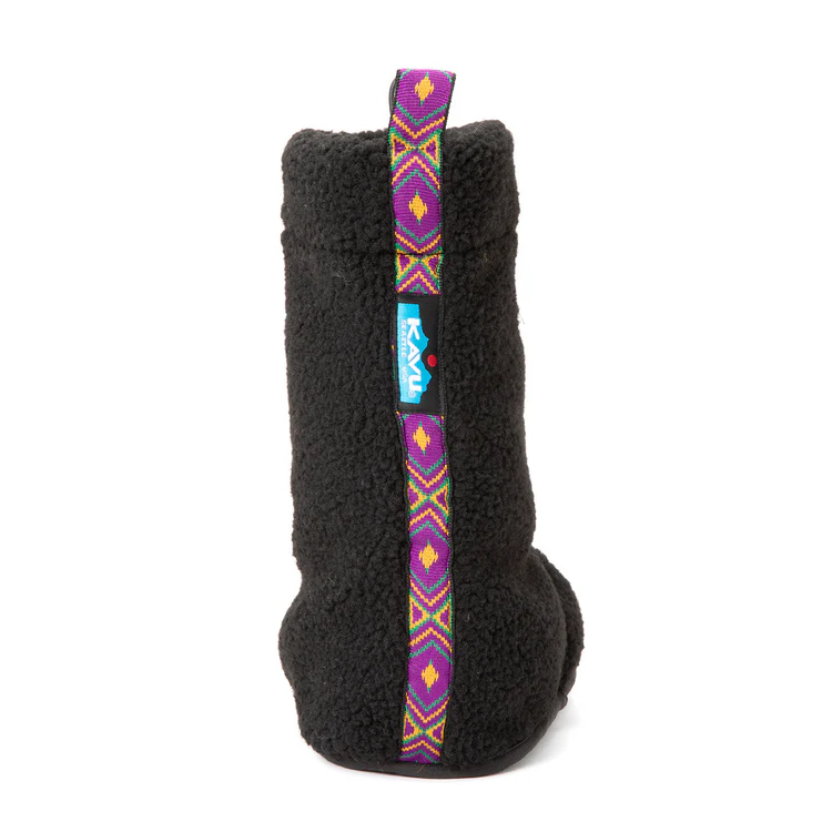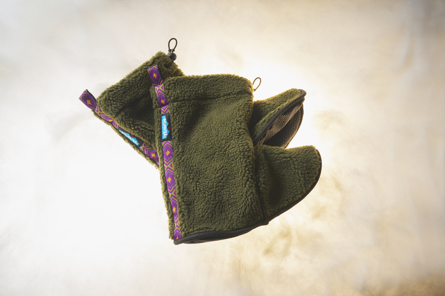見た目にもあたたかなボアフリースは、保温性の高さがウリ! ソックスとは言えど、ブーツタイプのデザインだから、パンツの裾をインして、履き口のスピンドルをギュッと締め上げれば冷気を遮断。スタイリングもバッチリキマる理に叶ったデザイン。背面はカブーらしいウェビングテープで飾り付け。
