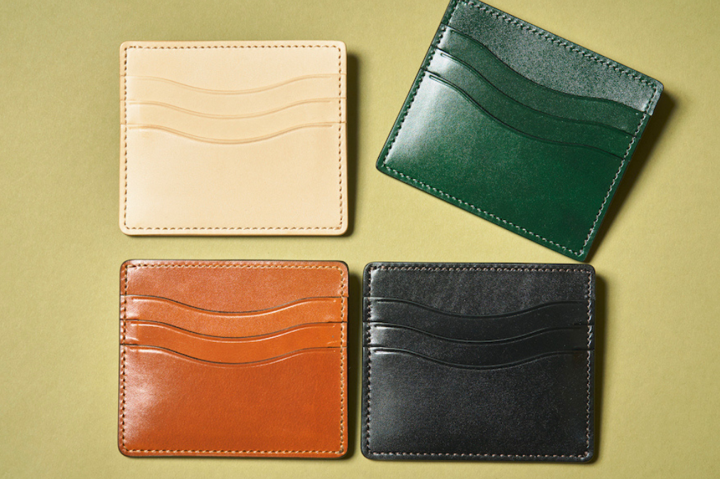 1873年に創業したベジタブルタンニン鞣しを得意とするベルギーのタンナー、マシュア社による、高い耐久性と適度なハリ感を誇る“サドルプルアップレザー”を贅沢に採用。中央スリットの札入れ、小銭入れ、カードスリット×3を装備しながらも片手で収まるサイズ感がグッド。