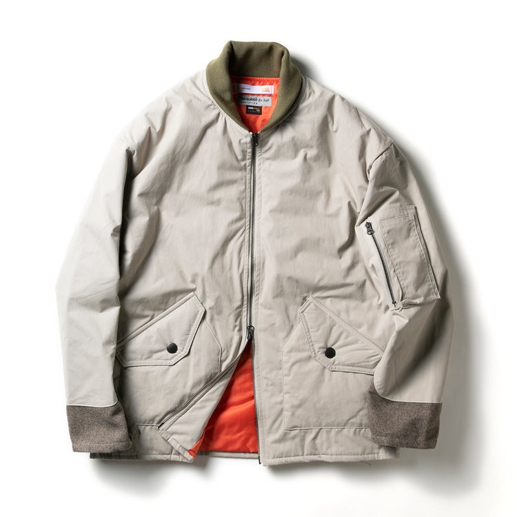ミリタリーアウターの定番であるMA-1ですが、定番ゆえに周囲と被るのが気になるという方もいるのでは? そんな大人のわがままに応えるのが、メイプル×ビギン別注の「コーデュラ混ロクヨン MA-1」です。表地はコーデュラナイロン混のロクヨンクロスで、マットな落ち着きとタフさを両立。中綿はシンサレートに替えて、見た目以上に保温性を高めた仕様に。さらに袖リブや裾リブを省いてジャケットライクにして都会的で大人な雰囲気にアレンジしました!