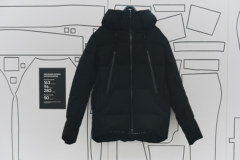 しかし、その製造には想像以上に手間がかかります。例えば、人気モデル「マウンテニア(MOUNTAINEER)」のSサイズ1着を作るには、163個のパーツと94種類の素材を使い、280個の工程を経て50人の職人が携わる必要があります。特に工程数は一般的なアウターの4倍近くにのぼり、その多くは手作業によるもの。