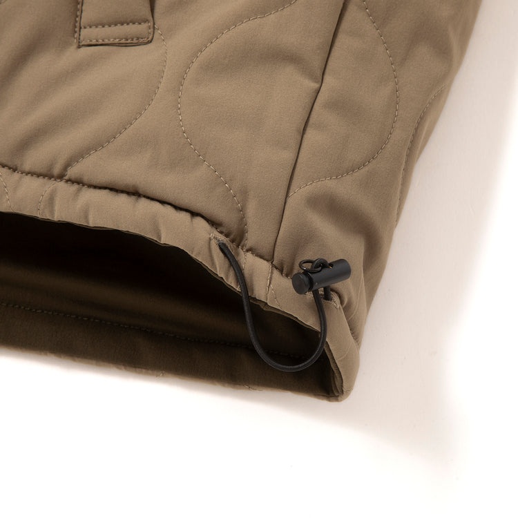 生地の切り替えや、ヘチマキルティングのミリタリー風味のデザインで、コーディネートに合わせやすい! 軽くて暖かいので、普段着としてはもちろん、アウトドアにもおすすめです。