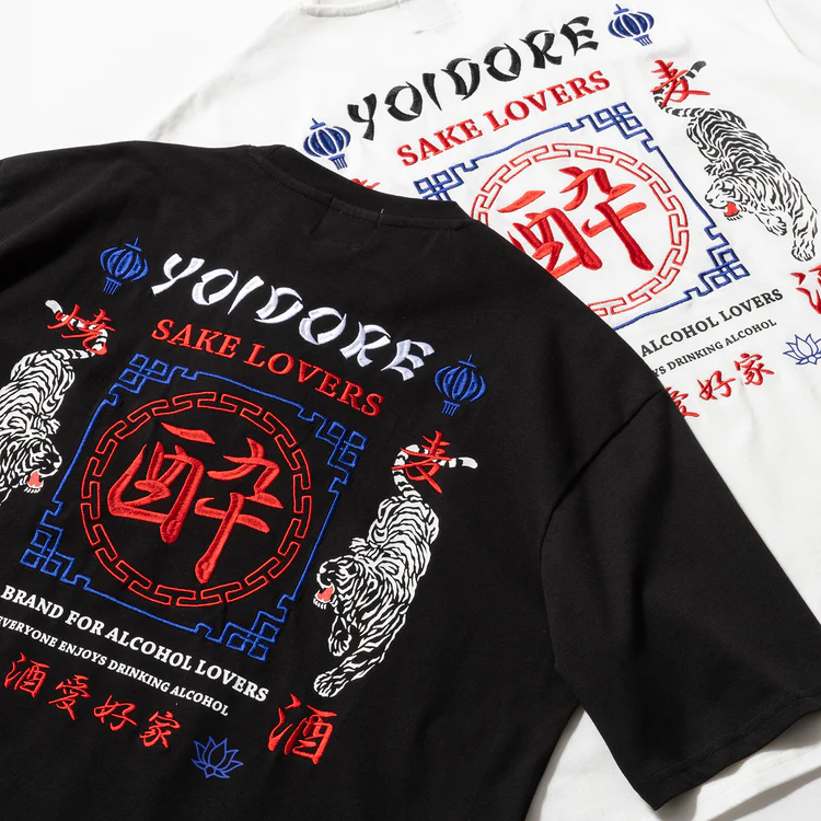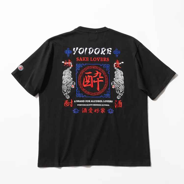 酒を愛するすべての者に送る、ヨイドレの酒愛好家T。フロントには立体的なブラシ刺繍で「酒愛好家」のスクエアロゴを配し、バックにはインパクト大の酔虎刺繍をオン。今の時季はインナーに、夏は1枚で。コーデに差がつくインパクト大な一枚として大活躍します。