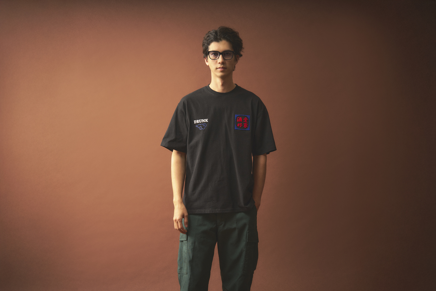 フロントの「酒愛好家」と描かれたスクエアロゴは、立体的なブラシ刺繍で表現。一見シンプルな印象ながら、近づくとその質感の高さが際立つつくり。バックは打って変わり、インパクト大の酔虎刺繍をオン。和洋折衷のオリエンタルなデザインが、このTシャツのデザインのキモ。プリントと刺繍が入り乱れる贅沢なつくりは、見逃し厳禁!