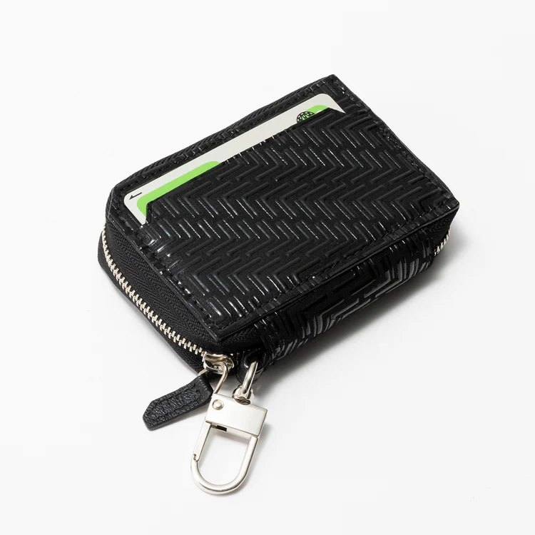 凹凸感のある独特の光りを放つキーケース。何を隠そう、こちらは日本の伝統工芸「甲州印伝」を今に伝える「印傳の山本」とMADE IN ITALYにこだわる「ラルコバレーノ」、人気アートディレクター「秋山具義」氏によるロゴデザインを、ビギンが取りまとめたクアドラプル(四者)コラボアイテム! 一筋縄ではいかない4つの個性を落とし込んだ会心の出来となっています!