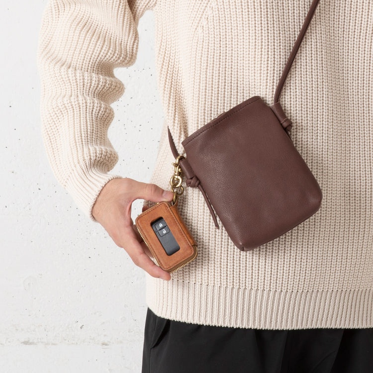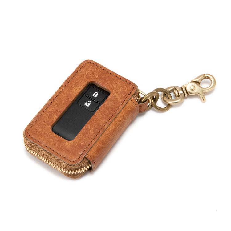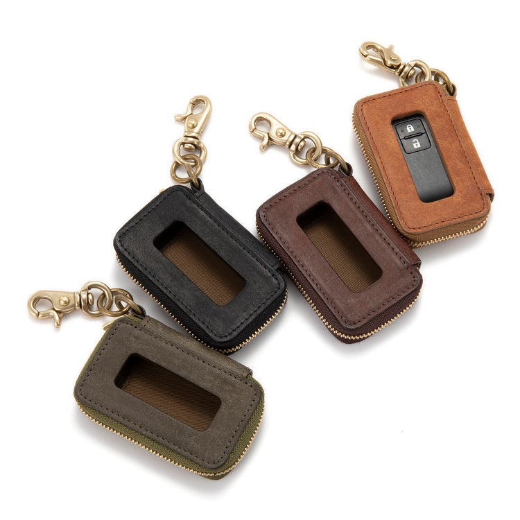 収納できるのは、最近多くなってきた車の分厚い鍵。ぐるりと配されたジップを開ければ、楽ちんにセット完了。窓穴が空いているため、ケースに収納したままポチッとボタンも押せちゃいます。高品質のレザーを使用していながら、プライスはアンダー1万円とかなりコスパも高い!ギフトにもおすすめですよ〜♪