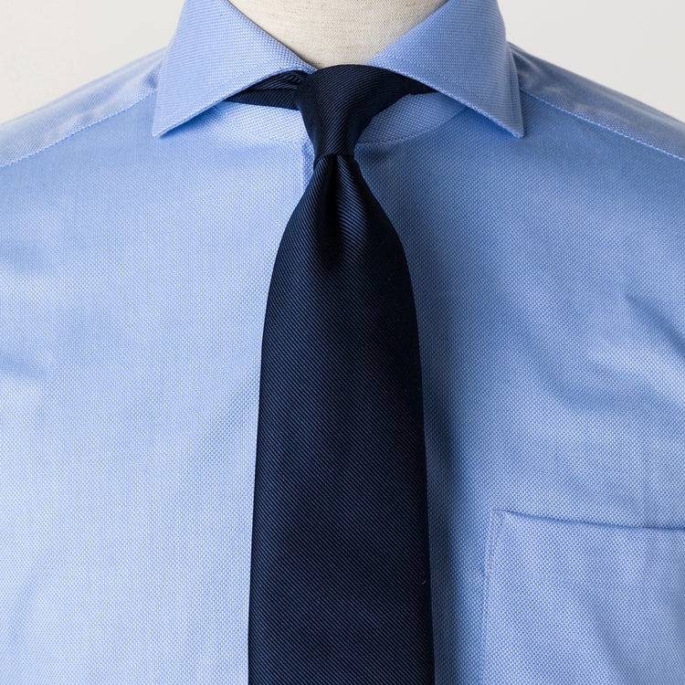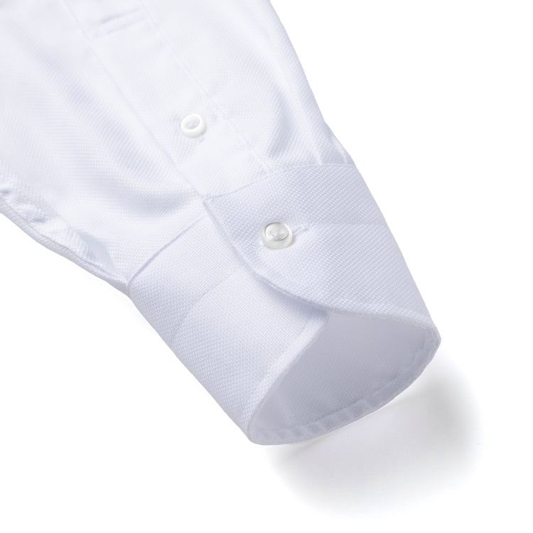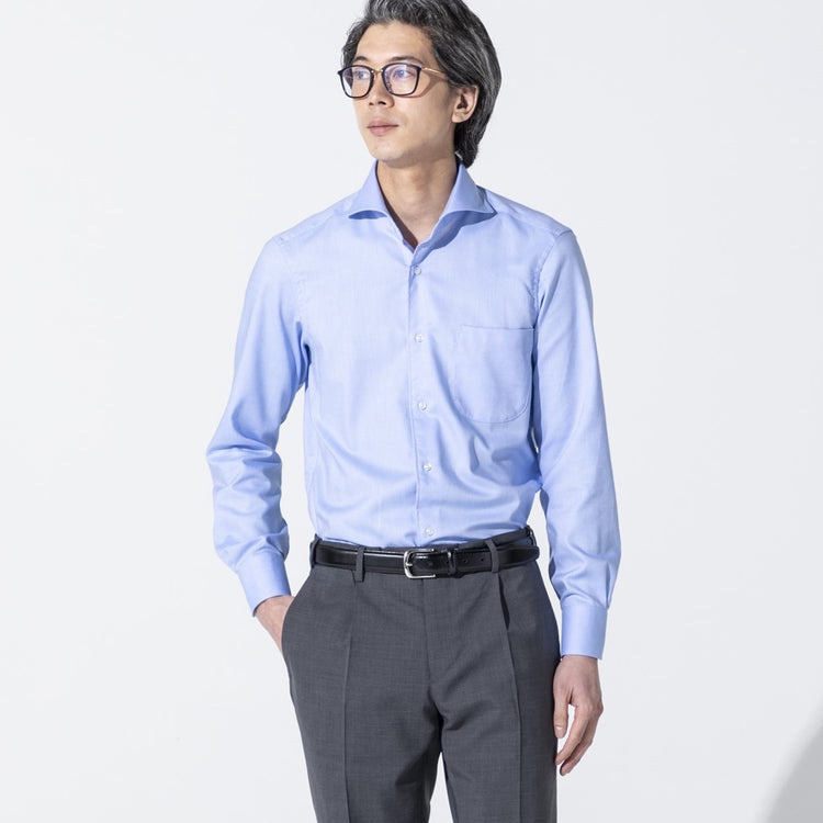 上質なコットン100%のツイル生地を用いつつ、形態安定加工を施すことでノーアイロン性能を獲得。ネクタイなしでも決まる首回りの表情からは、ネクタイの名門のプライドも感じられます!