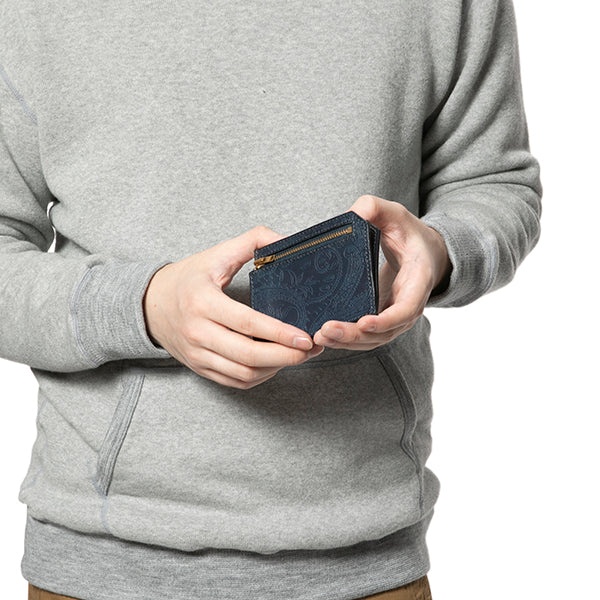 キャッシュレス時代の現代では、現金やカードはほぼ持ち歩かないと言う方も多いのでは? とはいえ小銭や数枚のカードは“念のため”で必要。なのに財布が膨らむと、せっかくの身軽さが台無しです。そこでおすすめしたいのが、リアクトレザーワークスの「INDIGO SLIM WALLET」です。スマホサイズの超薄型で手に馴染みつつ、札入れ・カードポケット3つ・コインポケットをしっかり装備。大和藍のインディゴに定番のペイズリー柄が効いて、薄いのに雰囲気は濃いめです!