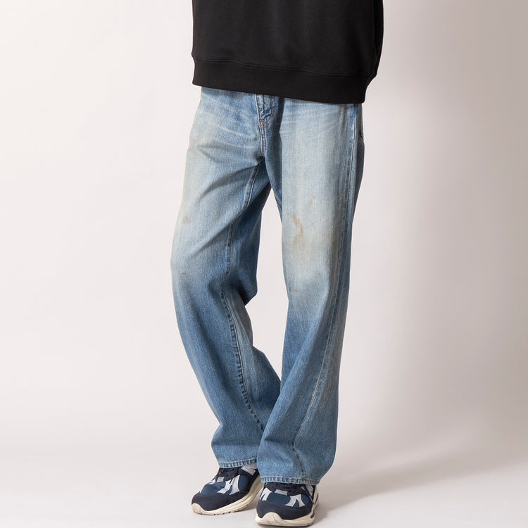 岡山県の自社工場で「JOHNBULL」のノウハウを活かし生産されているオリジナルブランドのこちら。12ozのセルビッチデニムを用いた、ジャパンメイドの本格派ストレートジーンズです。あらゆる手法を使ったダメージ加工によりビンテージの味わいを丹念に再現しています。