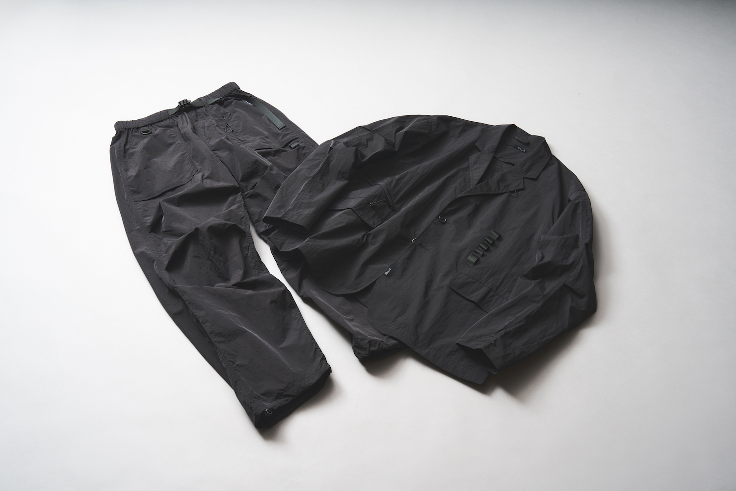 ひと昔前であれば、スポーティーな雰囲気に偏りがちだったナイロン素材。それを裏付けるように90年代はド派手な色使いや光沢感のあるスポーツウェアが巷に溢れていました。素材の進化もあってか、時を経て、ナイロン素材、所謂“シャカシャカ系(もしくはそれに類するもの)”は“テック系”として近年大バズり。そんな注目のナイロン素材を使ったセットアップ対応のジャケットとパンツがバックブランド、ノアールから登場しました。フランス語で黒を意味するNoiR(ノワール)らしく、色は黒一色。水を弾き蒸れにくい、シワ感とシャリ感のある軽量ナイロンに、バック由来のディテールを搭載した、テックな雰囲気ムンムンのアイテムとなっています。