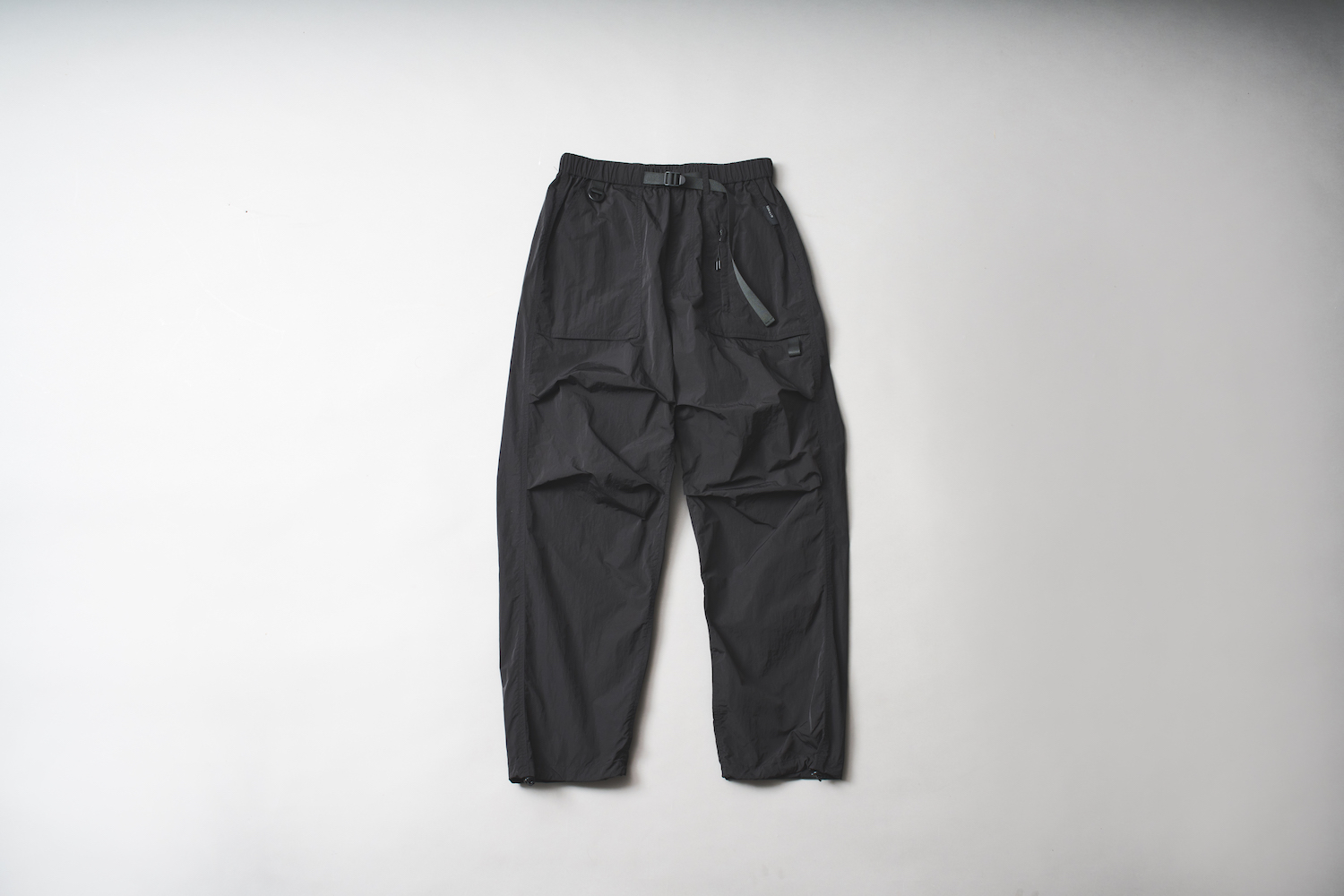 構築的なポケットデザイン&ギアライクなディテールが特徴の、機能と余白をまとうテクニカルワイドパンツ。ユニセックス対応で動きやすく、シックに見える出立ち。ウエストはウェビングベルト×バックル仕様で着脱もスムーズ。