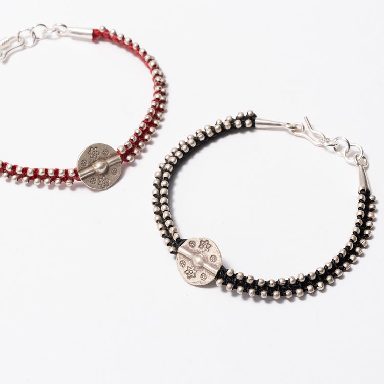 【カレン族の護符を手元に】タイの山岳民族のパドゥア刻印が幸福を呼ぶシルバーコードブレス【マレット】