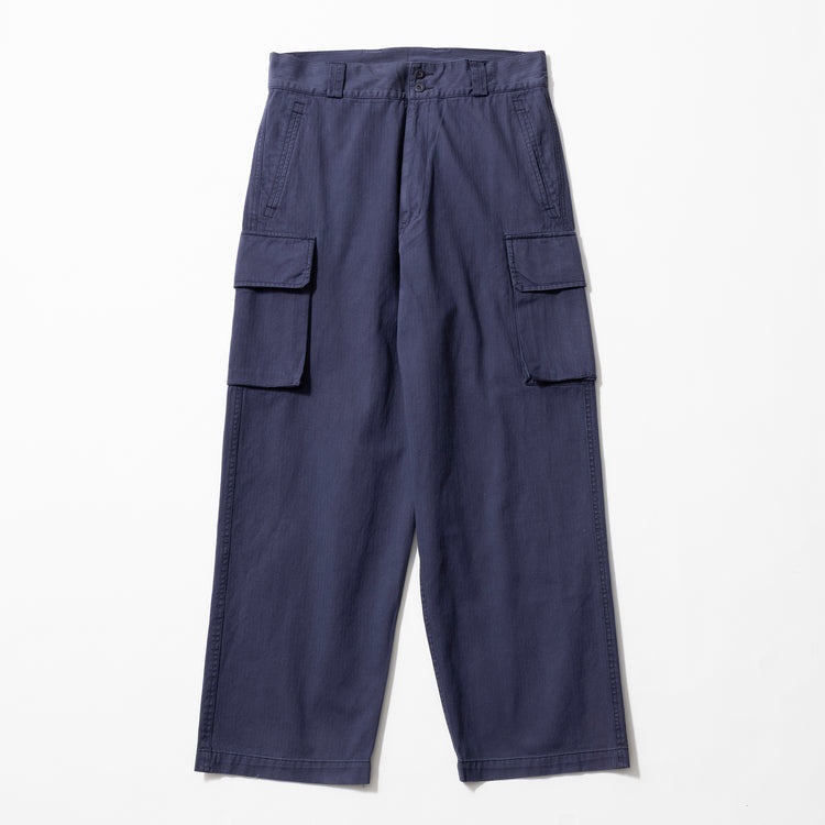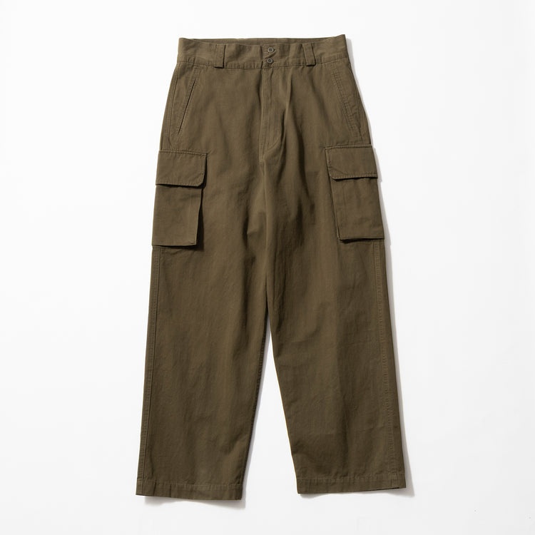 コットン100%のヘリンボーンツイルを採用し、穿き込むほどに経年変化を楽しめるのが魅力です。太めのストレートシルエットながら、無骨さと洗練のバランスを絶妙に調整しています。スニーカーからブーツまで、幅広いシューズとの相性が良好で、週刊でも出番が多い一本となっています。アメカジやミリタリーテイストを都会的に着こなしたい大人向けのミリタリーパンツです。