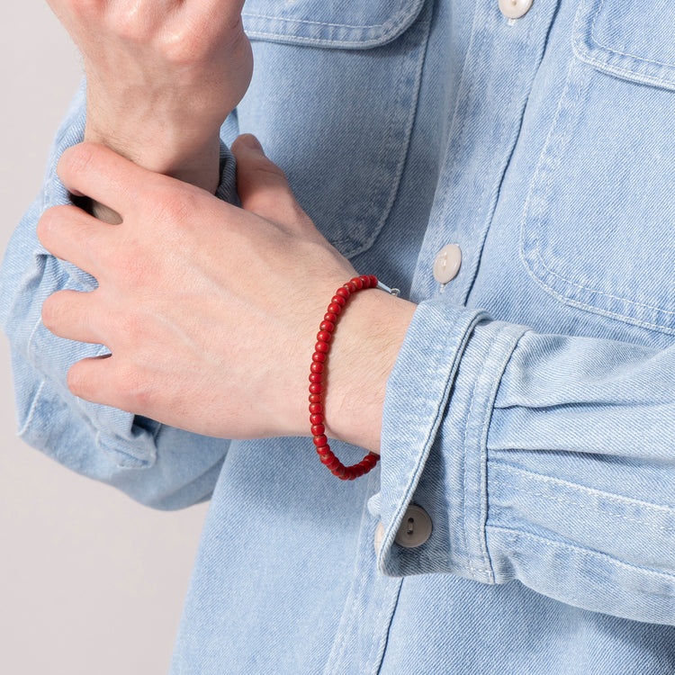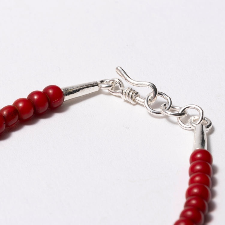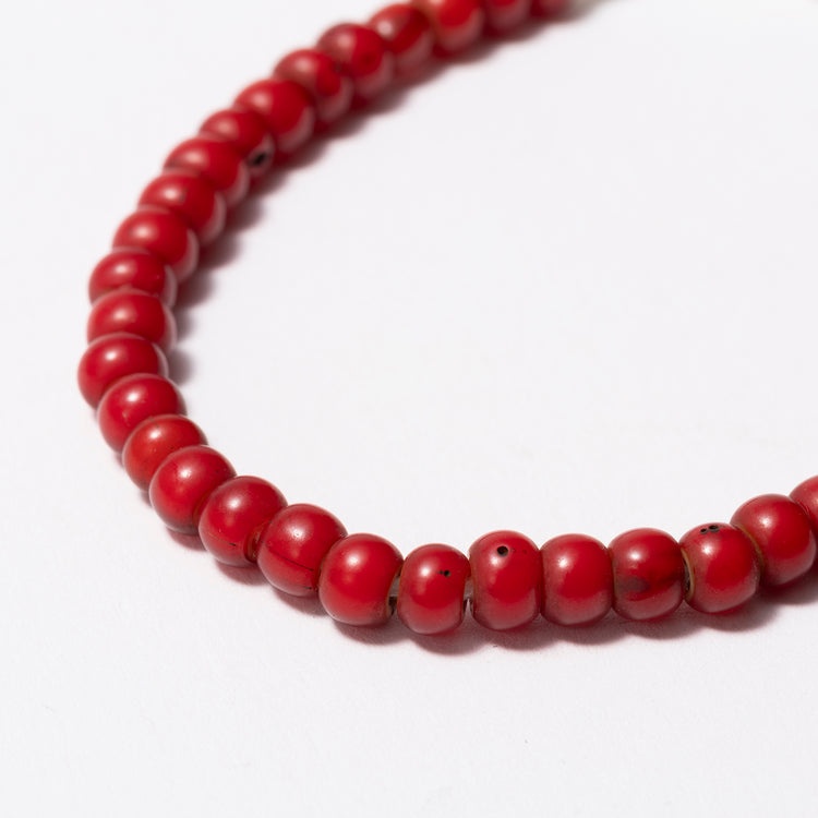 コートを脱いで手元の露出が増える春に向かうこれからの季節、装いが軽くなるぶん“何か足したい”欲も出てきます。でもアクセは盛りすぎると気恥ずかしい。そこでおすすめしたいのが、マレットの「ホワイトハートガラスビーズブレスレット」です。鮮やかな真紅のカラーがアクセントになるヴィンテージガラスビーズが、手元でさりげなくきらり。留め具はシルバーフックで、高級感もひとさじ添えてくれます。これからの季節のちょっとしたアクセントに効果的なブレスレットです!