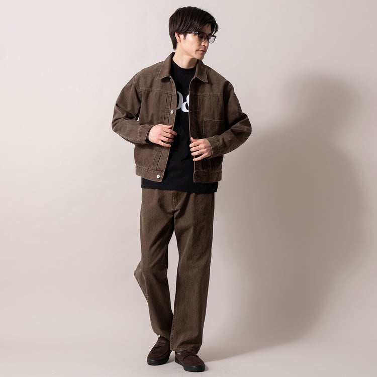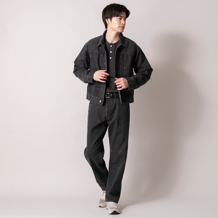 1stタイプのGジャン型で、時代を超えて愛される王道のシルエットの本作。硫化染めツイル生地を製品加工により、ヴィンテージのようなくすんだ風合いに仕上げた独特の表情が魅力です。綿100%素材で肌触りよく、季節を問わずガシガシ着られるタフな生地感が◎。着込むほどに味わい深くなる経年変化を楽しめる、長く相棒にできる逸品です。