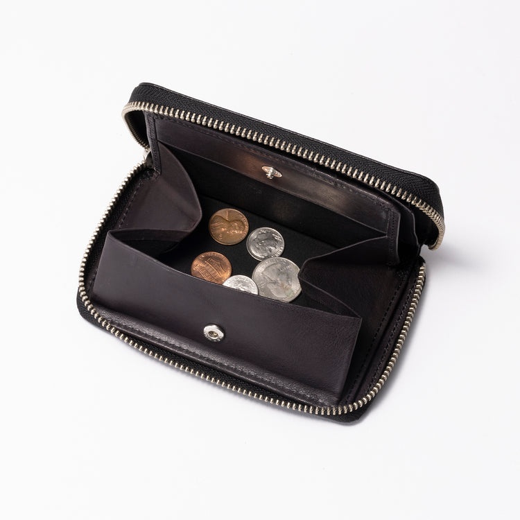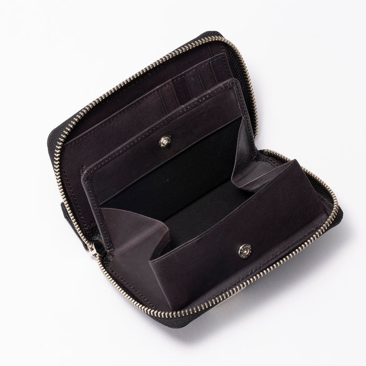 ラウンドシルエットながらマチのあるミドル財布で、コイン、札、カードの収納も十分。毎日のポケットや鞄の中で、愛用するたびに表情が変わっていきます。