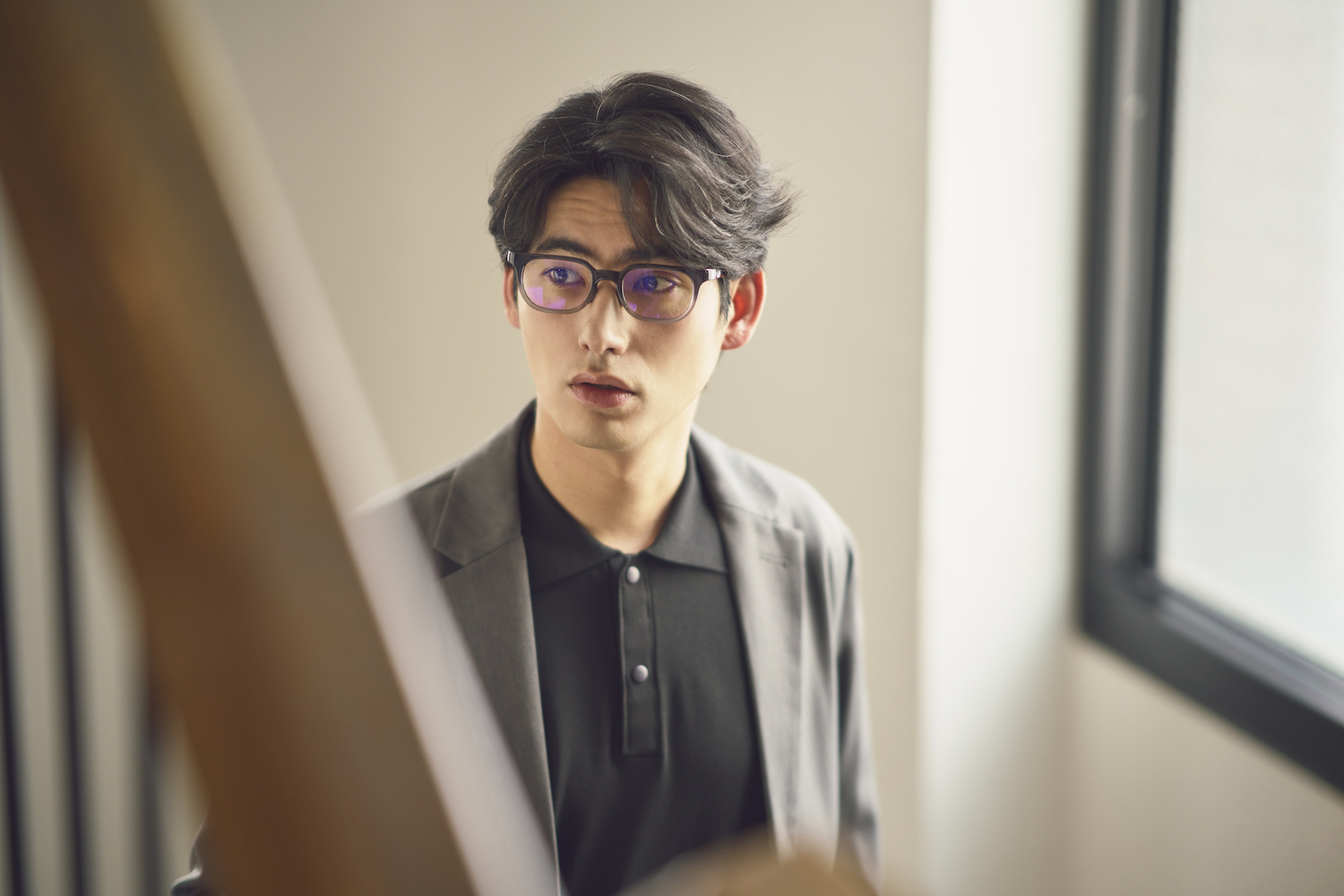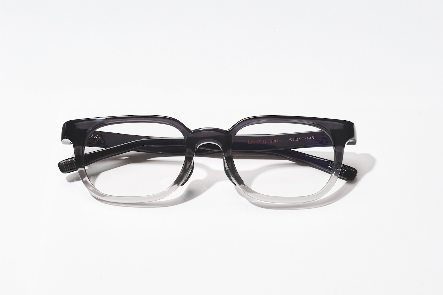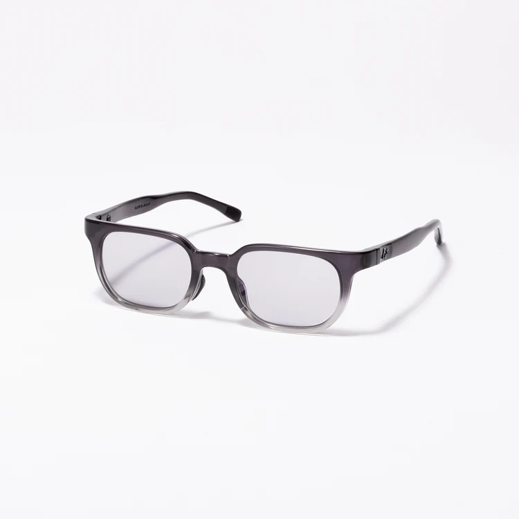 紫外線のある場所では黒く、紫外線のない場所では透明に変化する、調光とブルーライトカットを兼ねたレンズを搭載。フレームは天地幅の浅い横長バランスで、トラディショナルとモダンが融合した中間顔が魅力。