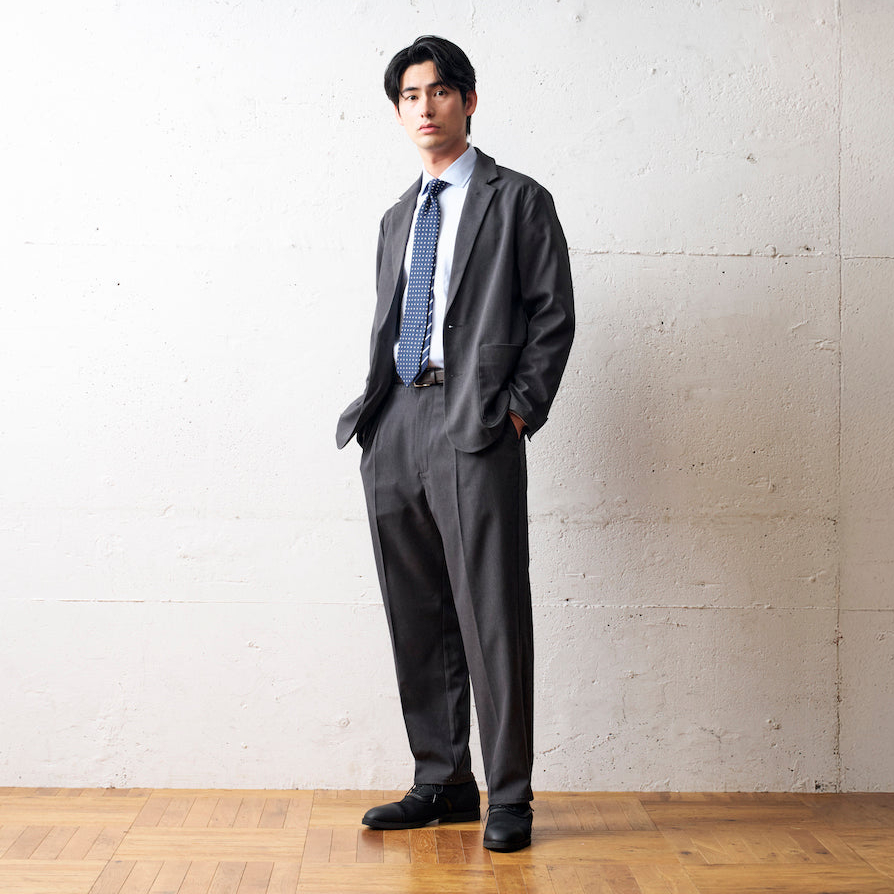 シーンを選ばない王道のシングルジャケット。カジュアルに合わせても自然とサマになるゆったりめのシルエット。