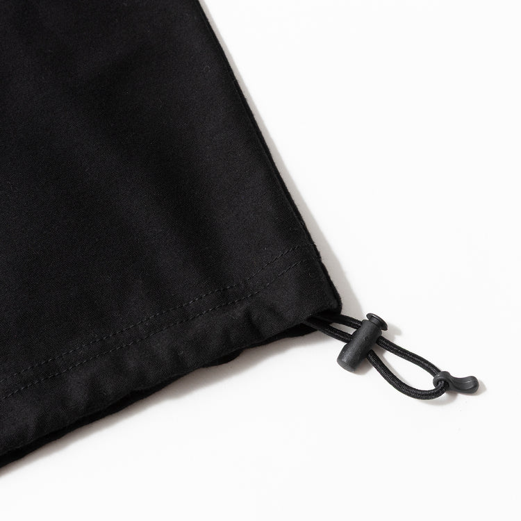 裾のドローコードでシルエットを簡単に変えられるのがうれしいポイント。ゆったりめにすればリラックス感を、絞ればすっきりキレイめに。