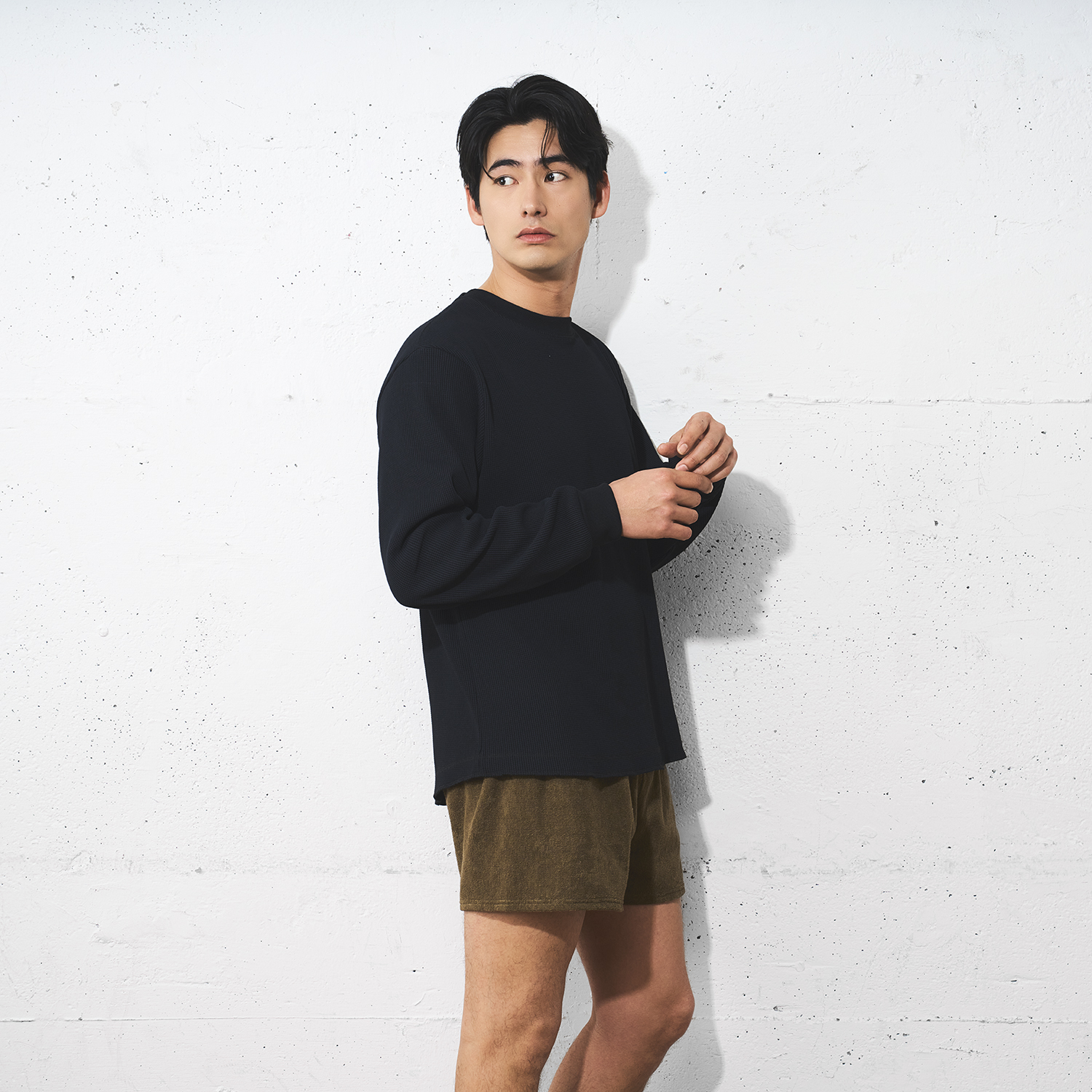 ソフトなストレッチが効いたオリジナルパイル地は、まるでタオルに包まれたかのような多幸感。前立てのないスッキリとしたシンプルなデザインに仕上げた。