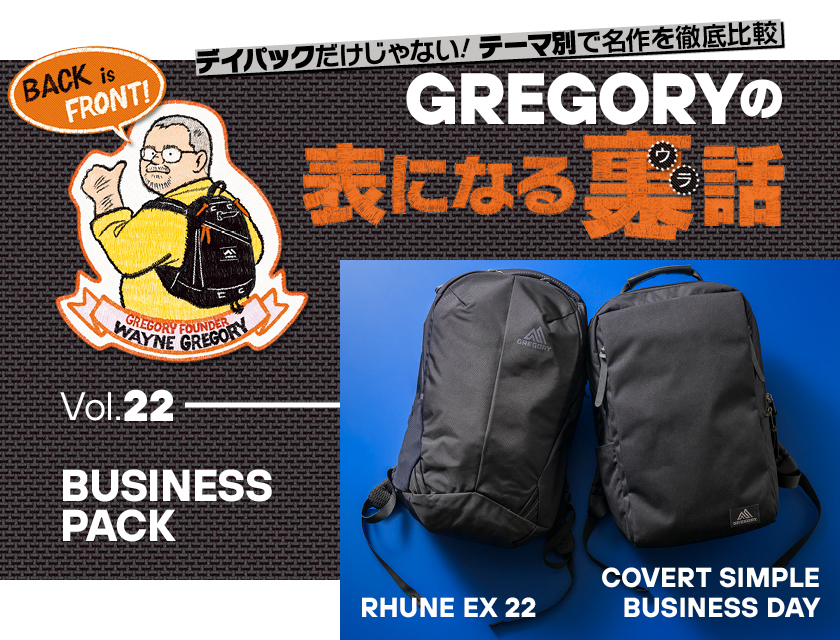 「背面こそ正面」。これは、バックパック作りでは背負い心地が命という、グレゴリーの創業者ウェイン・グレゴリー氏の格言です。本連載はその哲学を下敷きに、グレゴリーの代表作「デイパック」に隠れた裏名作や渾身作にウルトラフォーカス! テーマ別で、厳選した2つのパックを比較しながら徹底買い説します!