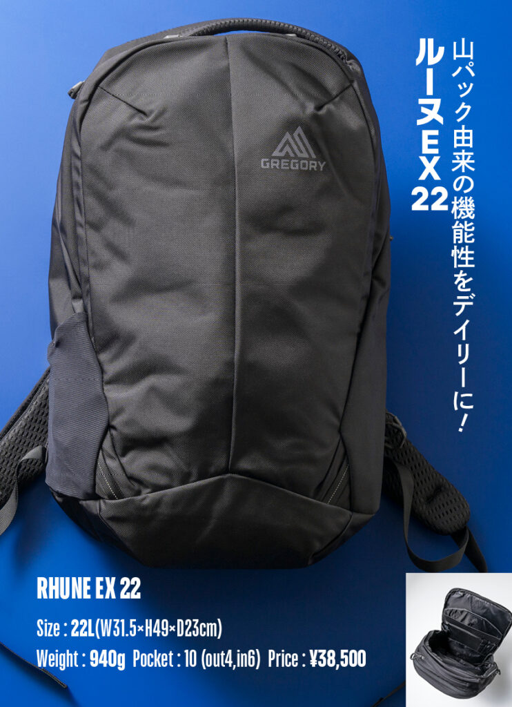 一方『ルーヌEX22』は、同社の核である山パック由来の機能が満載で、平日も休日も守備領域とする多目的パック。