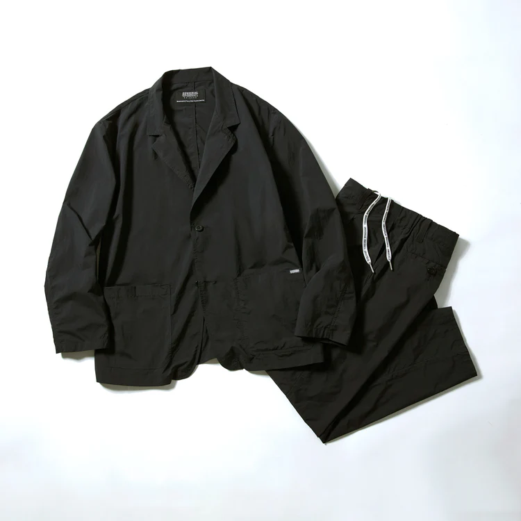 出張先や旅行先で年相応のきれいめな服装をしたいけれど、たくさん服を持っていくのはめんどくさい。そんなときはコレ! ユニバーサルオーバーオールに別注をした「どこでもワークジャケット」と「どこでもタックテーパードパンツ」のセットアップ! パッカブルで小さく畳んで持ち運ぶことができる上、シワにもなりにくい。めんどくさがりの僕らにぴったりのシロモノ。