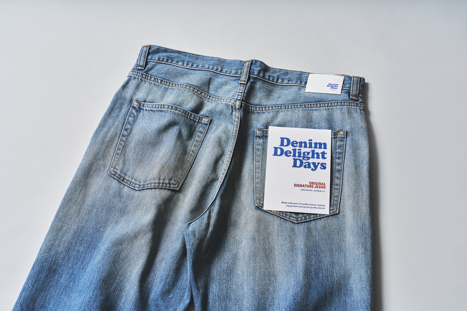 これは古着? いえいえ、答えはNO! ヴィンテージデニムさながらのオーラを纏うこの一本は、国産ジーンズ発祥の地・岡山県倉敷市児島発のジョンブルが手掛けるブランド・デニムデライトデイズのもの。本格派セルヴィッチデニムを使用したクセのないストレートジーンズは、誰でもそつなく穿きこなせる万能型。細部にまで緻密に施されたヒゲやシェービング、汚し、ダメージは他を圧倒する圧巻の出来!
