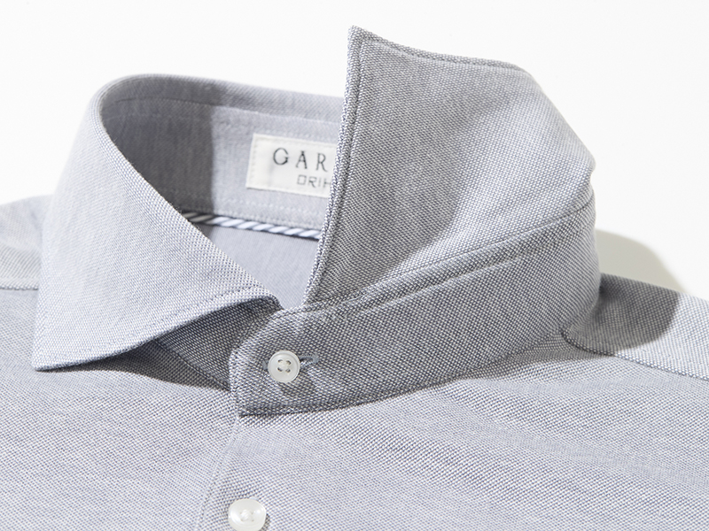 品格の決め手は「襟」にあり。ビジネスシャツ同様に台襟を備えているので襟立ちがよく、ワイドカラーが凛とした佇まいを演出してくれるのです。単体着用はもちろん、タイドアップやジャケットINがサマになるのも、この襟があってこそ!です。