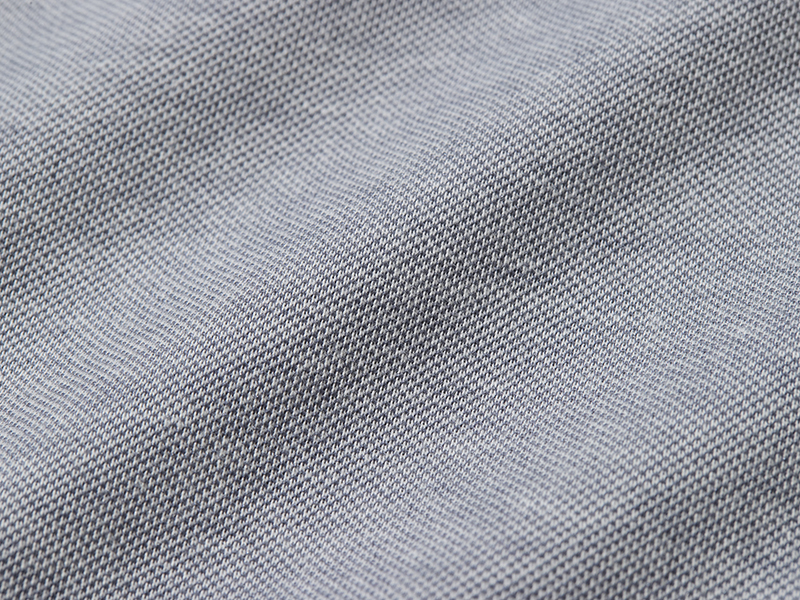 コットンとポリエステルの糸をプレーティング編みにした「ビズニットポロ」は、より上品なテイストを求めるビジネスパーソンに人気のアイテム。