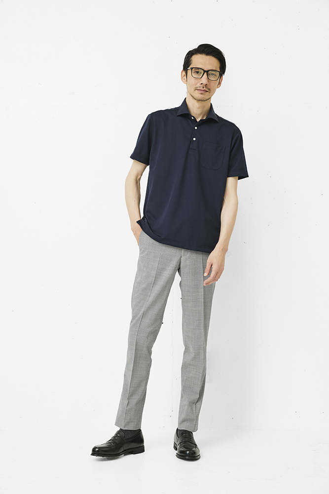 ヨークは見た目のきちんと感にも繋がるため、ビズポロにもビジネスシャツと同じこの作りを採用。品格と涼しさを鮮やかに両立する、まさに“微差こそ大差”のディテールといえましょう。