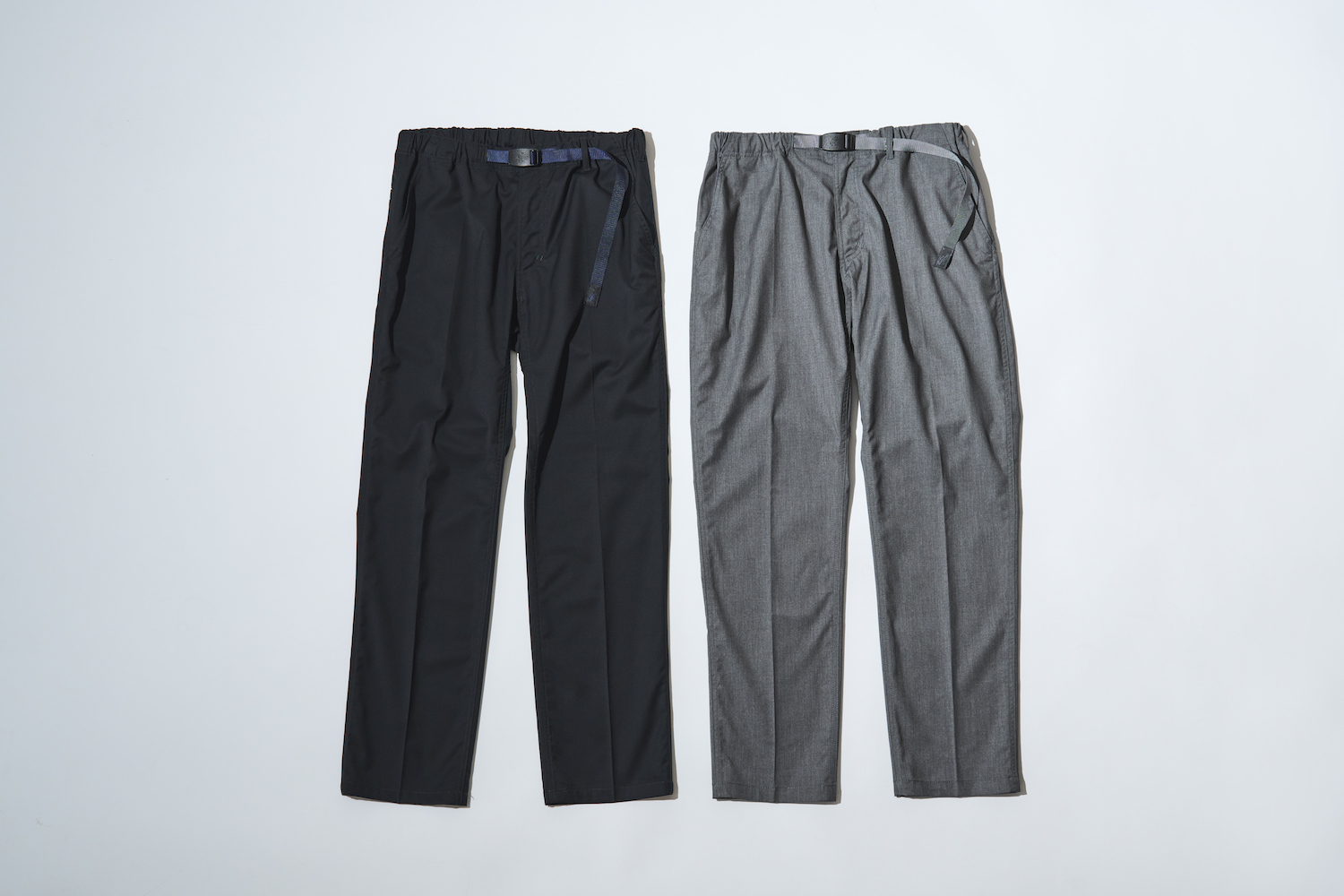 数多くのブランドやセレクトショップからのラブコールが絶えないグラミチパンツ。元々はクライミング用として誕生しただけあって、ガゼットクロッチとウェビングベルトによる動きやすさ&利便性は言わずもがな。そこに上品さを加えて誕生したのがビギン別注の超キレイに穿けるシリーズ! 生地には上品見えするギャバジンを選定。キレイめするセンタークリースに、ベルトを垂らさずしまえる完全モノトーン仕様となっています。その結果「オフィスワークも余裕でこなせる山パンになった!」というワケなんです。シルエットは選べる2モデルを用意。1本あると助かる上品仕上げとなりました♪