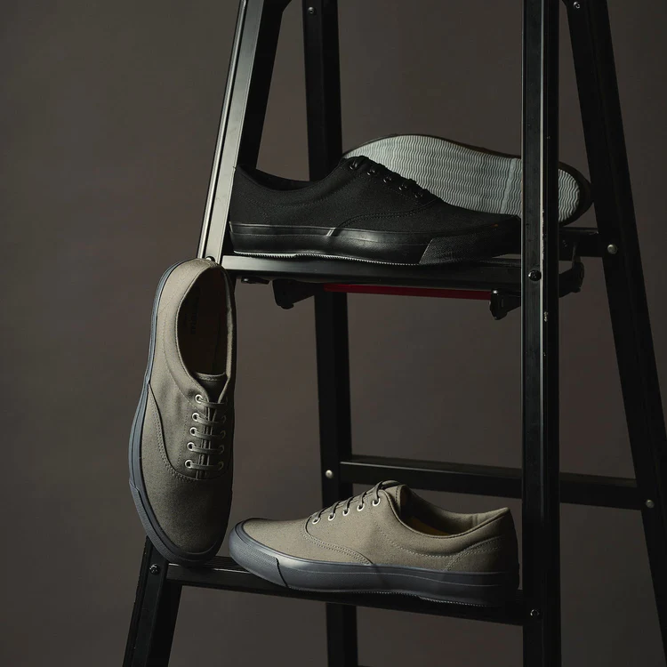 久留米の熟練の職人の手によって作られるバルカナイズ製法のスニーカーは履き心地バツグンで丈夫でしなやか。つま先のラバーテープにボリュームを持たせることで、履きこなしやすさをグッと向上させました!