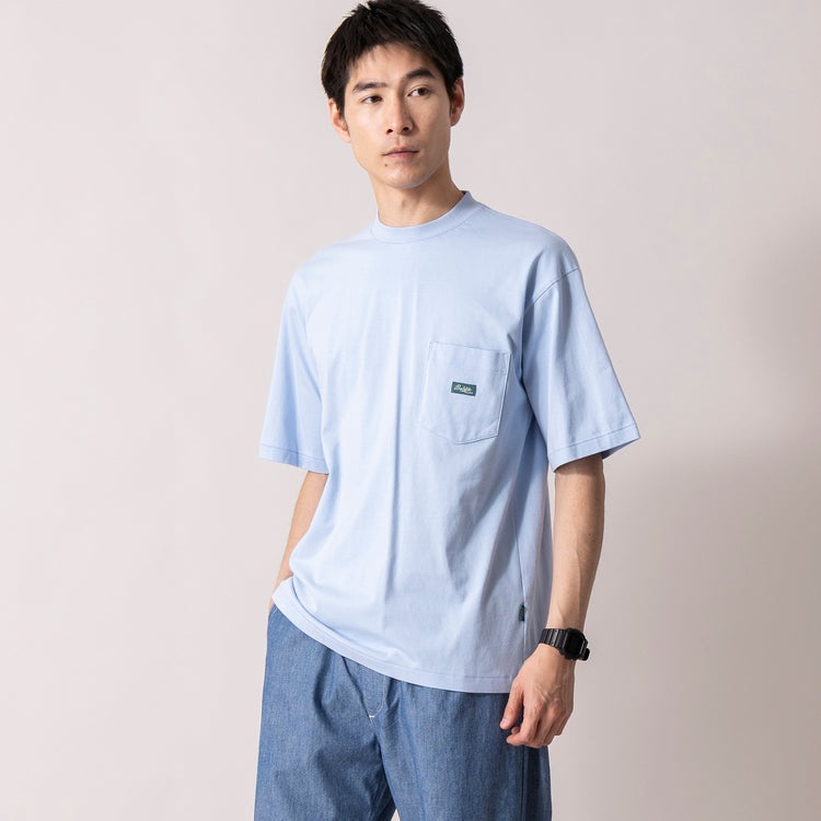 綿100%で着心地もよく、襟元のリブはジャケットなどのアウターを羽織ったときに首の汚れが付きにくい仕様に。ベーシックな見た目だから一枚でも、ジャケットの下でもすんなりハマる、オンオフ兼用の便利Tです。