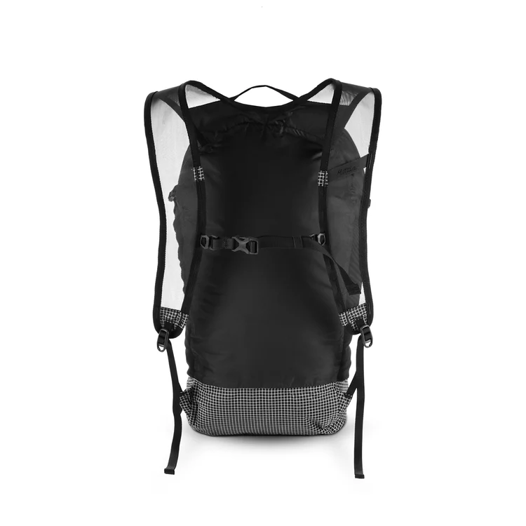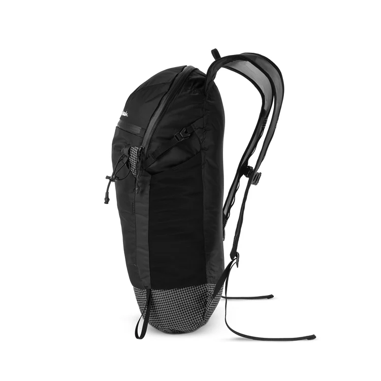 容量16Lながら、コンビニのおにぎり2個ほどに相当する超軽量級の190g。ともすれば、ペラペラとも言えそうな質感だけど決して侮るべからず。UHMWPE補強Robic®ナイロンを使った生地は耐久性が高く、耐水性も抜群。決して見た目で判断してはいけないという好事例だ。