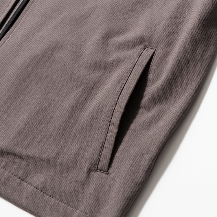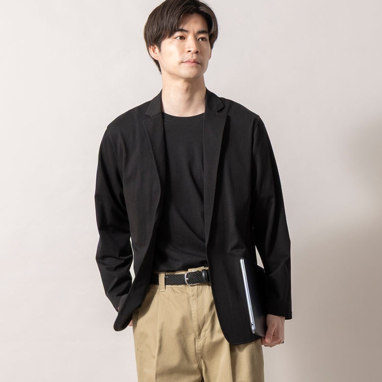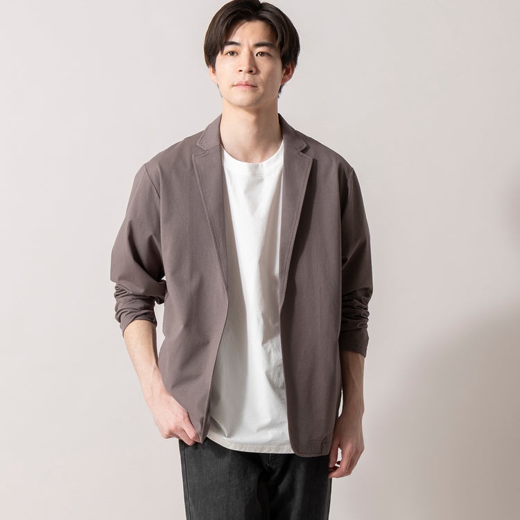 生地に織り込まれた細かいストライプが、シンプルながら深みのある表情を演出してくれる本作。ボタンレスのテーラードシルエットが、主張しすぎない洗練された個性を引き立ててくれます。素材は綿×ポリエステルで、春夏を通じて心地よい肌離れを実現します。