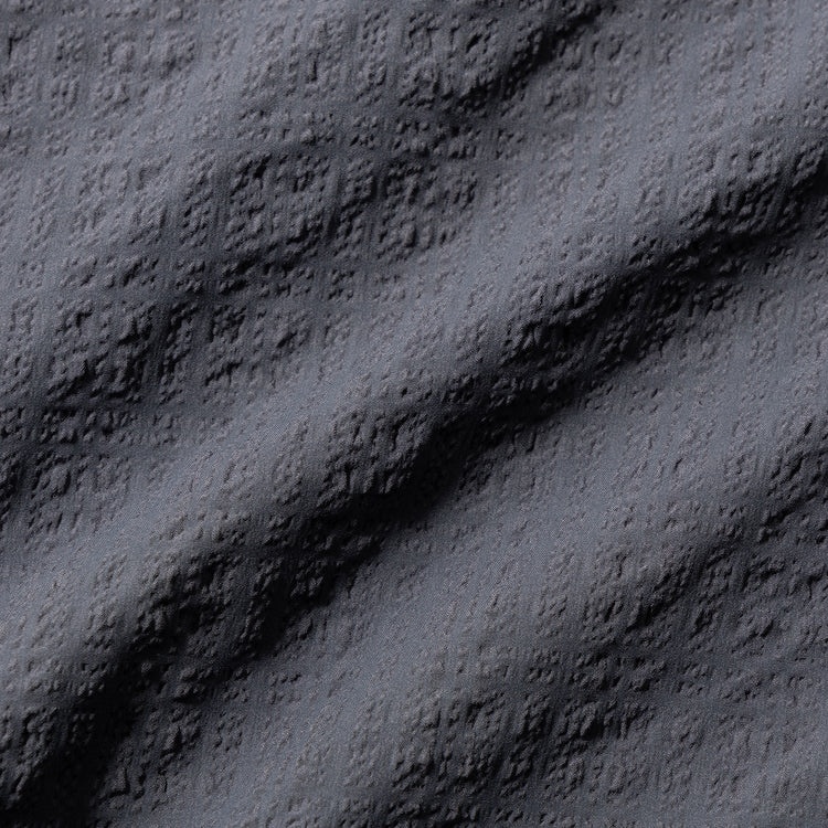 シアサッカー素材の凹凸により、肌に接する面積が減り通気性が向上。暑い時期でもサラッと着れる本作。ポリエステル100%で軽量かつ速乾性に優れ、洗濯後の乾きも迅速です。ウエストは、ゴム入りで紐付きなのでイージーに穿けます。