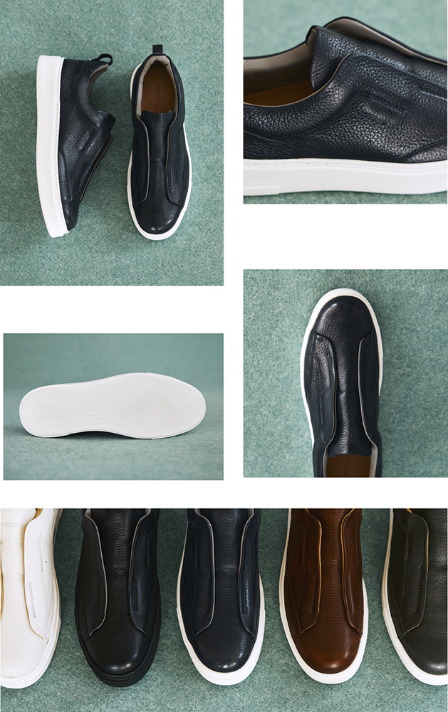 ラインナップには、王道のコートスニーカーをはじめ、手を使わずに履けるハンズフリータイプ、贅沢なイタリア産ディアスキンモデルなどが揃いました。いずれも上質な素材感と快適な履き心地をベースにした、大人に相応しい仕上がりです。