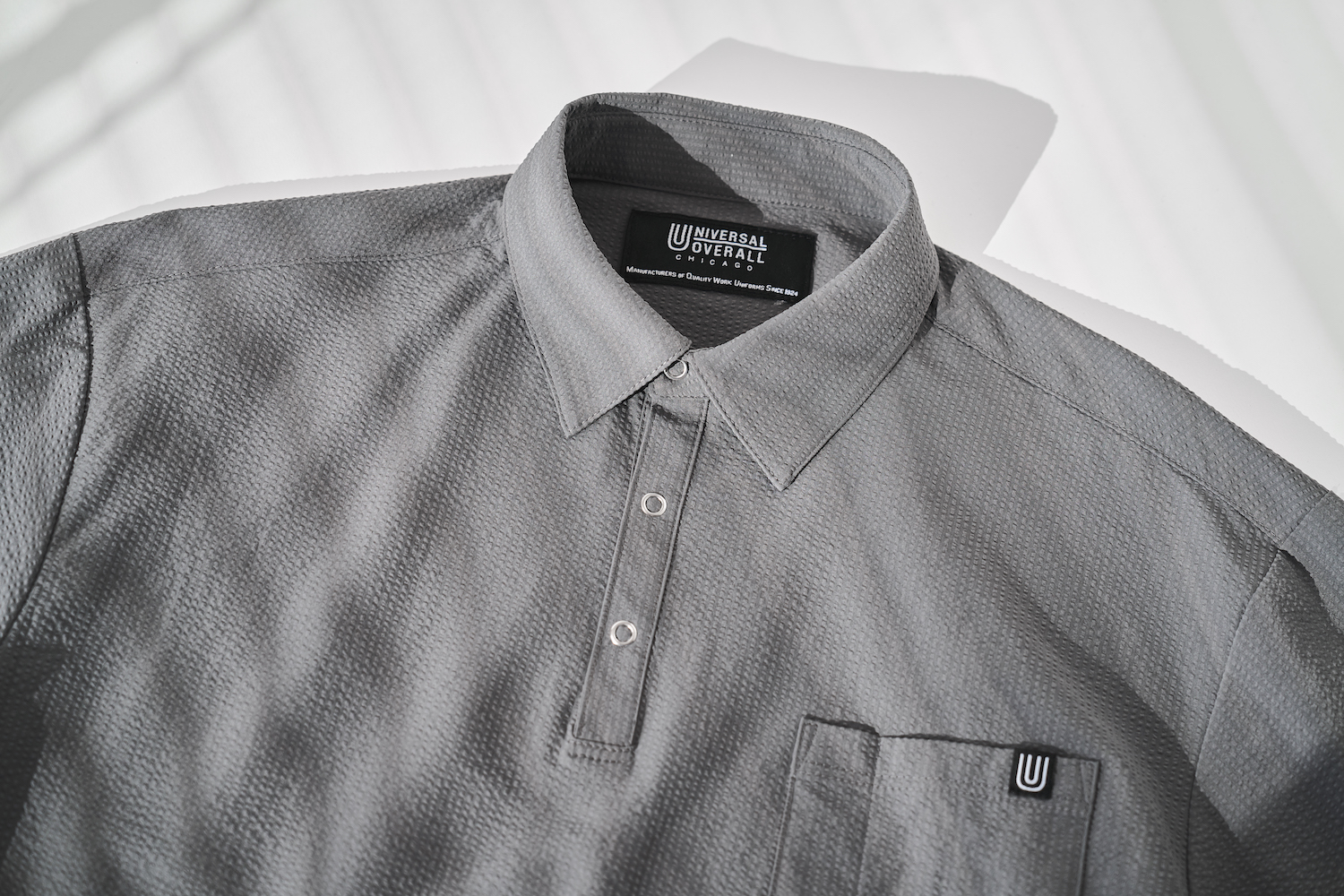 夏のお供である、肌離れの良いシアサッカー素材を引き続き採用。汗をかいても乾きが早く、サラッとした着心地を長時間キープ。ワイドシルエットと相まって着心地も軽やか。