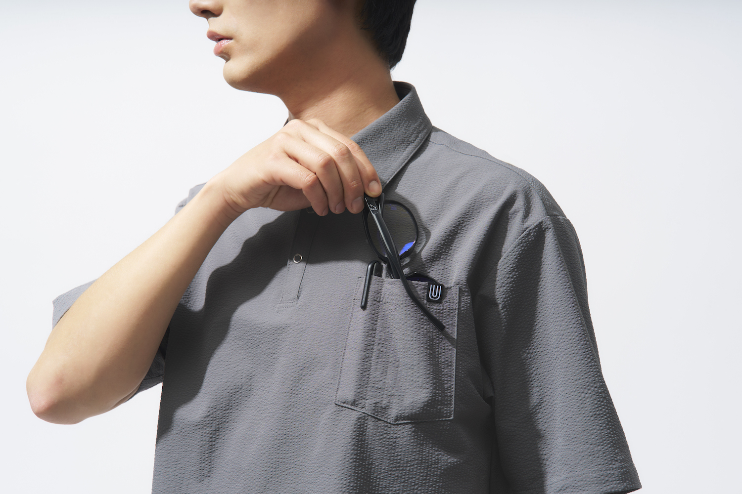 メガネがすっぽり収まるポケット横にこれまでになかったペン差しをプラス。ワークウェアブランドらしいギミックが効いた、実用性抜群のディテールだ。