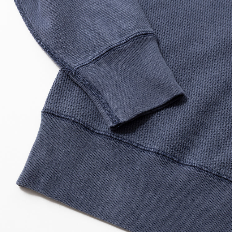顔料(ピグメント)によって繊維の内部ではなく、表面に色が乗ることで、新品なのにまるでビンテージのようなグッドフィーリング。一点絶妙に異なる色合いもピグメント染めならでは。