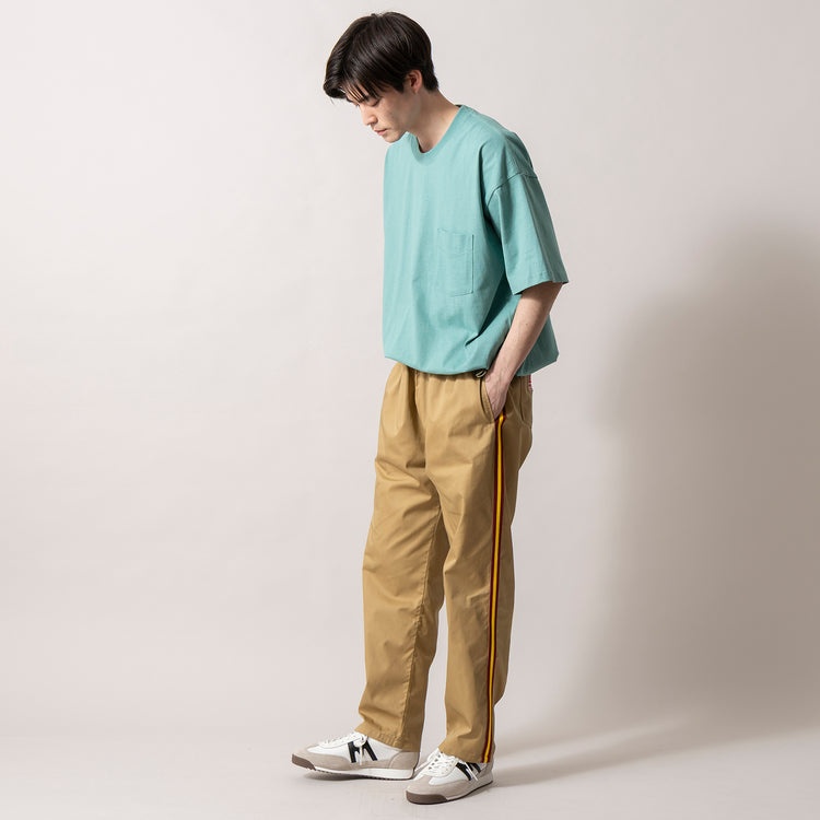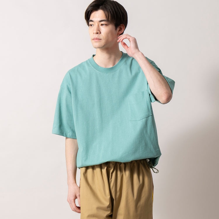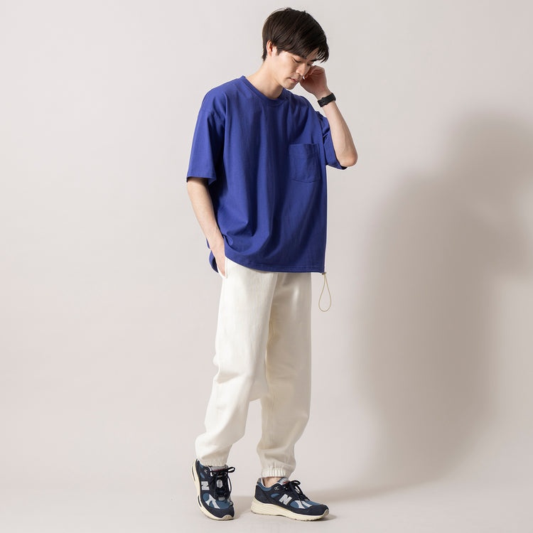 ワイドでビッグなシルエットながら、裾のドローコードで変化を楽しめるシンプルなこちらのポケットTee。綿100%素材で肌触りと通気性に優れ、汗の吸収・発散性も抜群です。しっかりした素材感で型崩れしにくく、ロングシーズン大活躍必至。ベーシックカラーから差し色まで豊富なラインナップで着回し力もあります。シンプルだからこそボトムスや小物とのコーディネートを選びません。