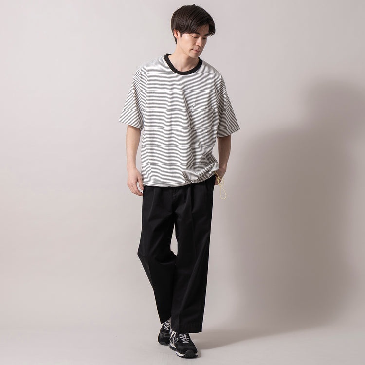 昨今のトレンドであるビッグシルエット。とはいえ、ただ大きいだけだとどこかだらしなく見えて、うまく着こなせない……という方もいるのでは? そんな方におすすめしたいのが、ジムマスターの「7.4ozヘビーウエイトビッグTee」です。ポイントは、裾をきゅっと絞れるドローコード。軽く調整するだけでシルエットにメリハリが生まれ、ゆるさはありつつも、ちゃんと今っぽく見せてくれます。しっかりとしたヘビーウエイト生地で一枚でも存在感があり、夏のTイチ姿をぐっとこなれて見せてくれます♪