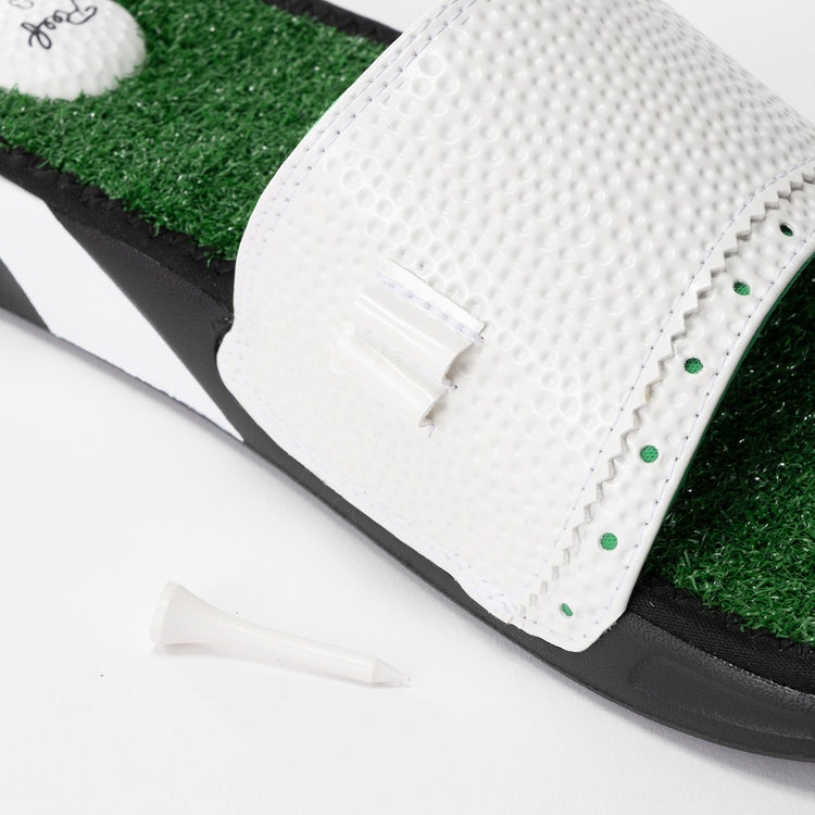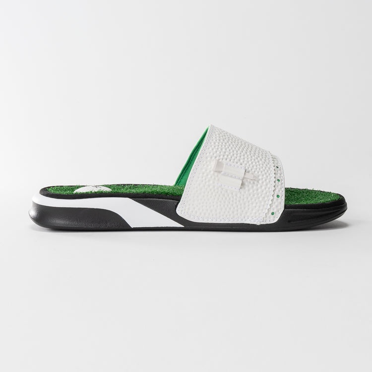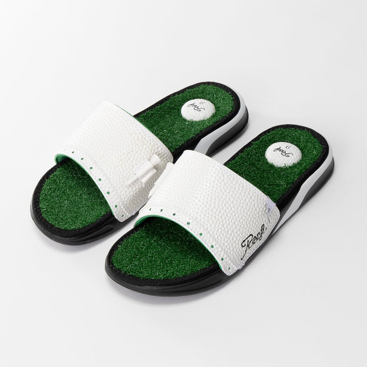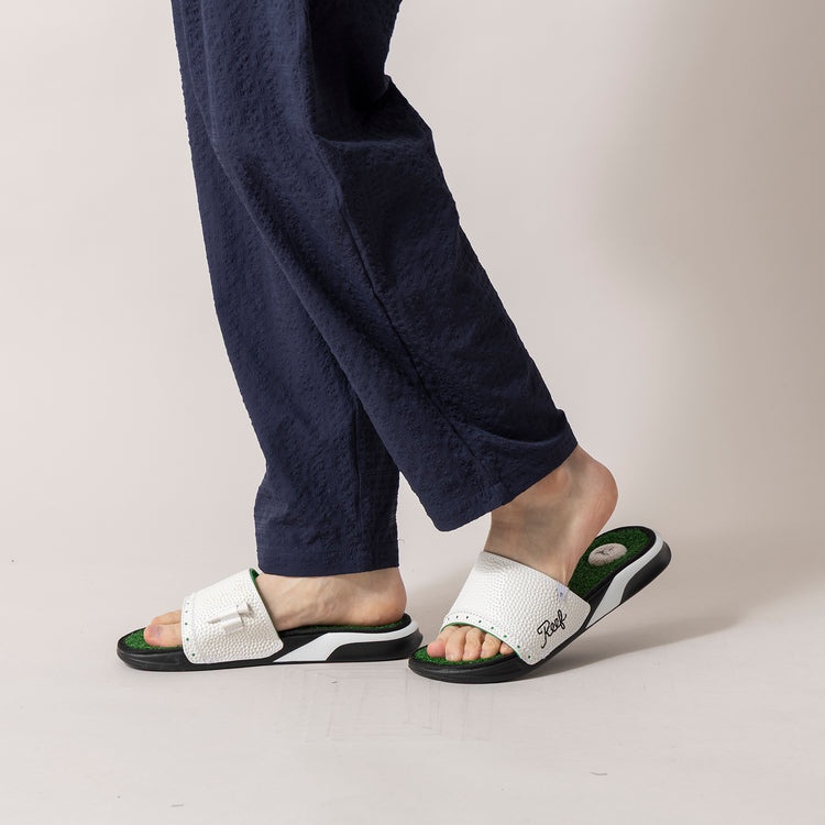 ゴルフ好きって、つい小物や服に遊び心を忍ばせたくなるもの。そこでおすすめしたいのが、リーフの「MULLIGAN SLIDE」です。ゴルフボールのような質感を表現したアッパーに、ティーホルダーまで備えたデザインは、ゴルフ好きならひと目で気分が上がること間違いなし。さらにフットベッドは芝生を思わせるユニークな仕上がりで、足を入れた瞬間から、まるでグリーンの上を歩いているような気分に。ゴルフ場での履き替え用としても話題になる一足です♪