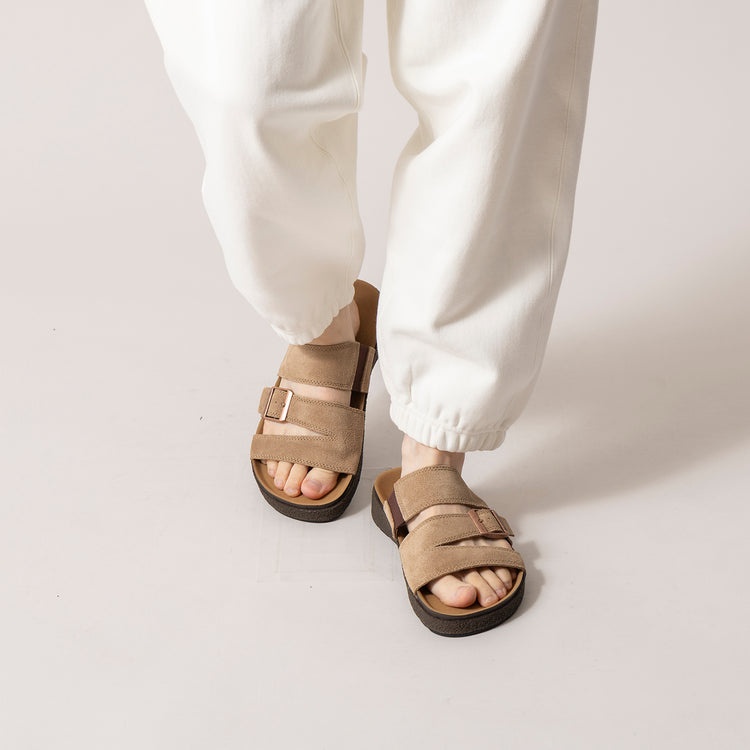 ブランドストーンならではの撥水スエードを使用したストラップ。海辺のレジャーや雨の日でもスエードが傷みにくいので安心して使えます!肌に触れるライニング部分は抗菌素材を使用しているので夏の気になる足の臭いも軽減。街歩きにも適したフォルムなので、素足でもソックスとのスタイリングでも幅も効かせてくれる逸品です!