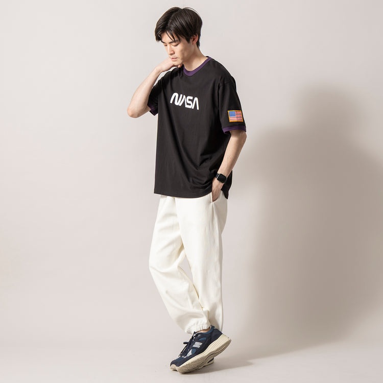 Tシャツ一枚の着こなしが増えるこれからの季節、やはり欲しいのはパッと見で気分が上がる主役級の一枚。そこでおすすめしたいのが、チャムスの「Space Ringer T-Shirt」です。フロントに大きく配したNASAロゴと、袖の星条旗モチーフがしっかり存在感を発揮しつつ、襟元と袖口のリンガー配色がどこかレトロなムードも演出。ゆったりしたシルエットなので一枚で着てもサマになりますし、シャツやジャケットのインナーに差しても着こなしのいいフックになってくれます!