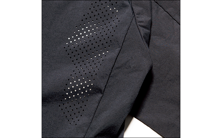 冬もムレがちな両脇付近にレーザーパンチングによるベンチレーションホールを配置。機能をデザインの一部としているのが洒脱だ。