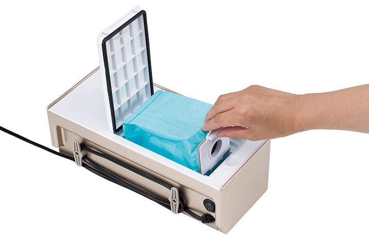 吸い込んだゴミは本体内の紙パックに溜まるので、ゴミに触れることなく捨てられるのもいい。