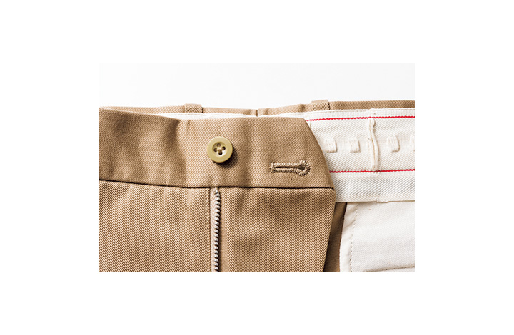 マッカーサー元帥が着用していたパンツがベース。糸を2 本どりにした肉厚で美光沢なウエポン生地を今季から採用し、より骨太に。